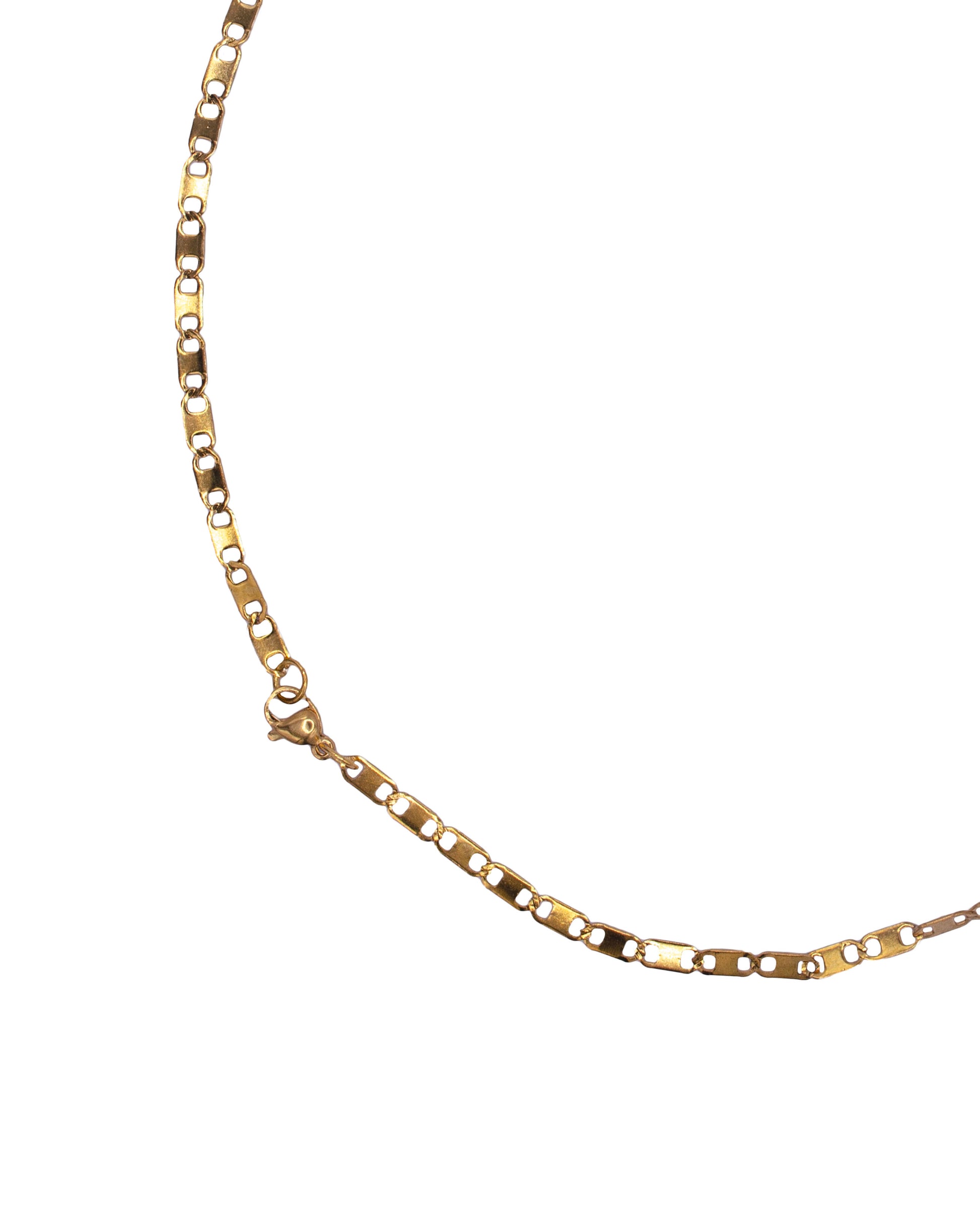 Dal design grafico e ordinato, Trama è una catena piatta e luminosa che gioca con la ripetizione e la geometria. Le sue maglie regolari creano un ritmo visivo elegante, perfetto da indossare da solo o con un ciondolo. Disponibile in oro o argento, è una base moderna e versatile.